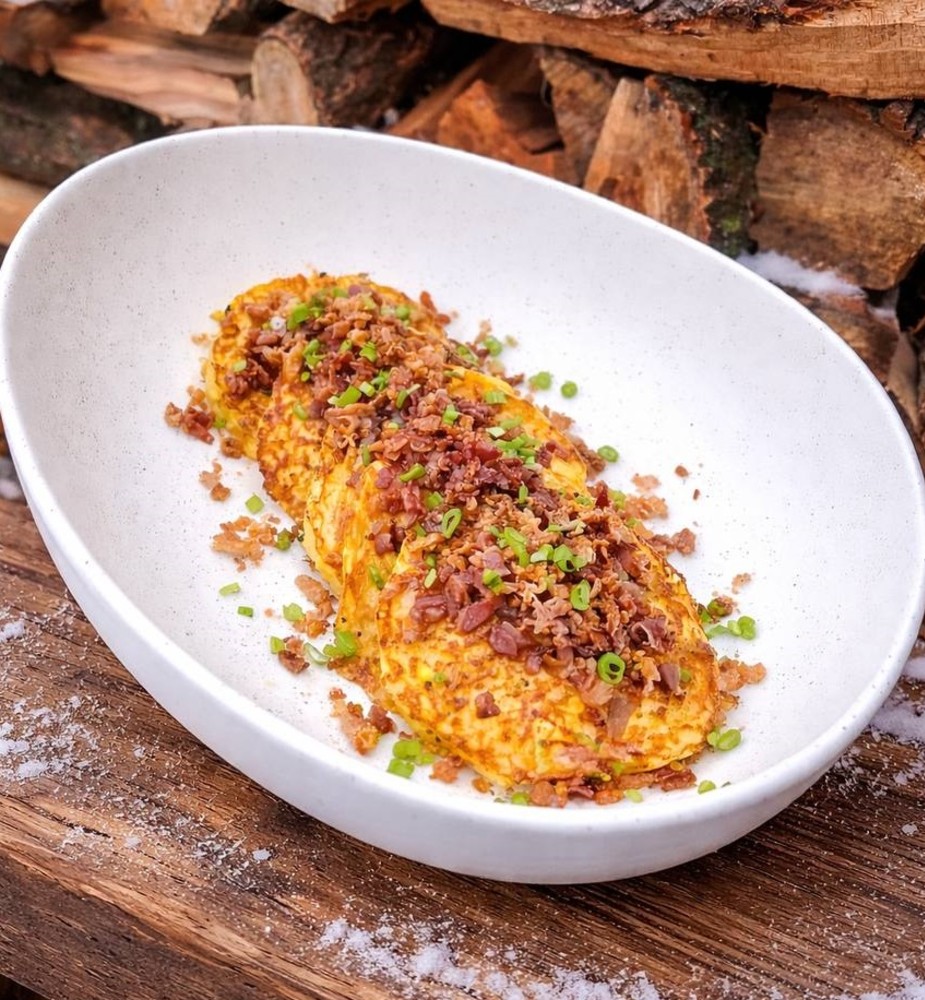 Деруни з беконом та кранч цибулею